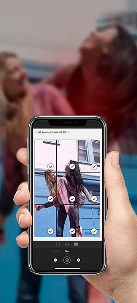 Haluatko julistekokoisen kuvan? HP Sprocket voi auttaa sinua. Segmentoidun tilan avulla voit tulostaa yhden suuren kuvan 2 x 3 tuuman paloina kerrallaan.3 Puoliksi juliste, puoliksi palapeli, täysin hauskaa.
